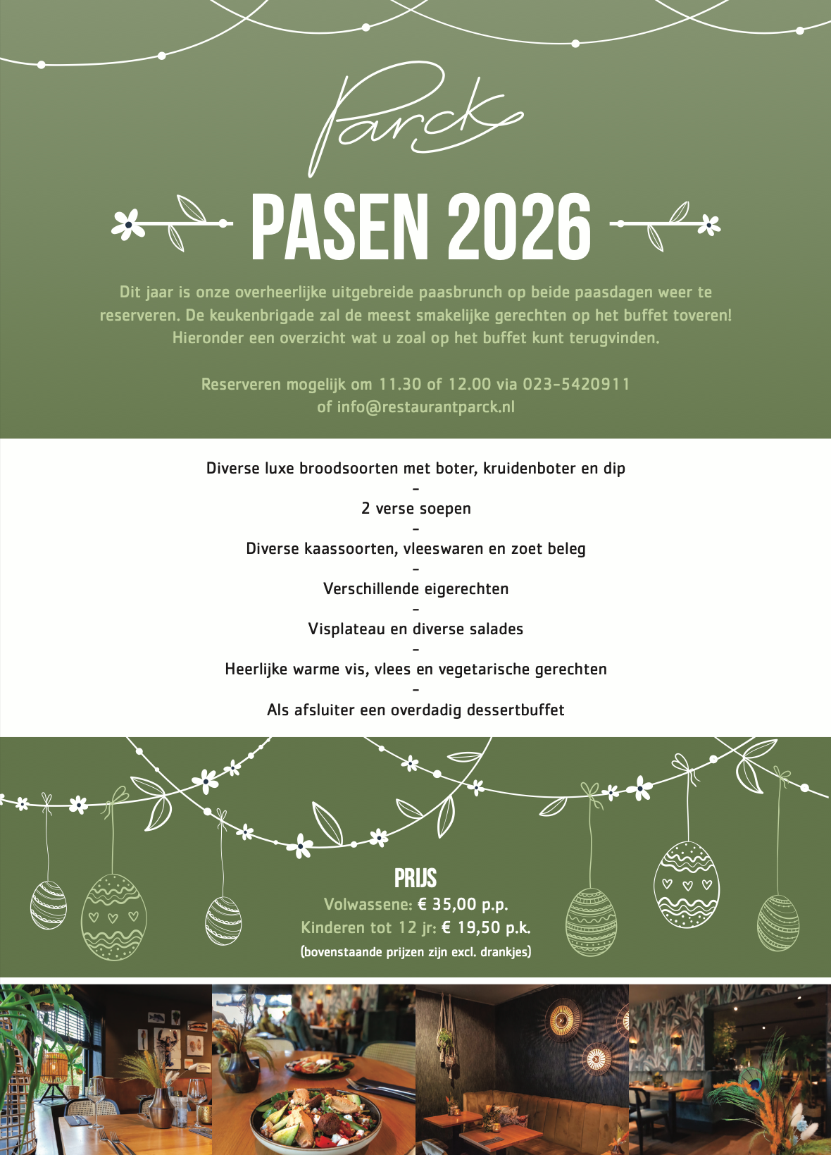 Reserveren mogelijk om 11.30 of 12.00 via 023-5420911 of info@restaurantparck.nl